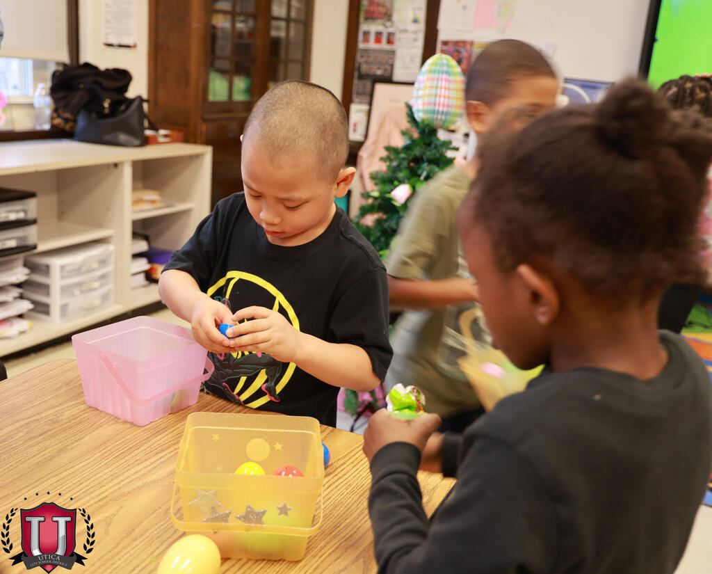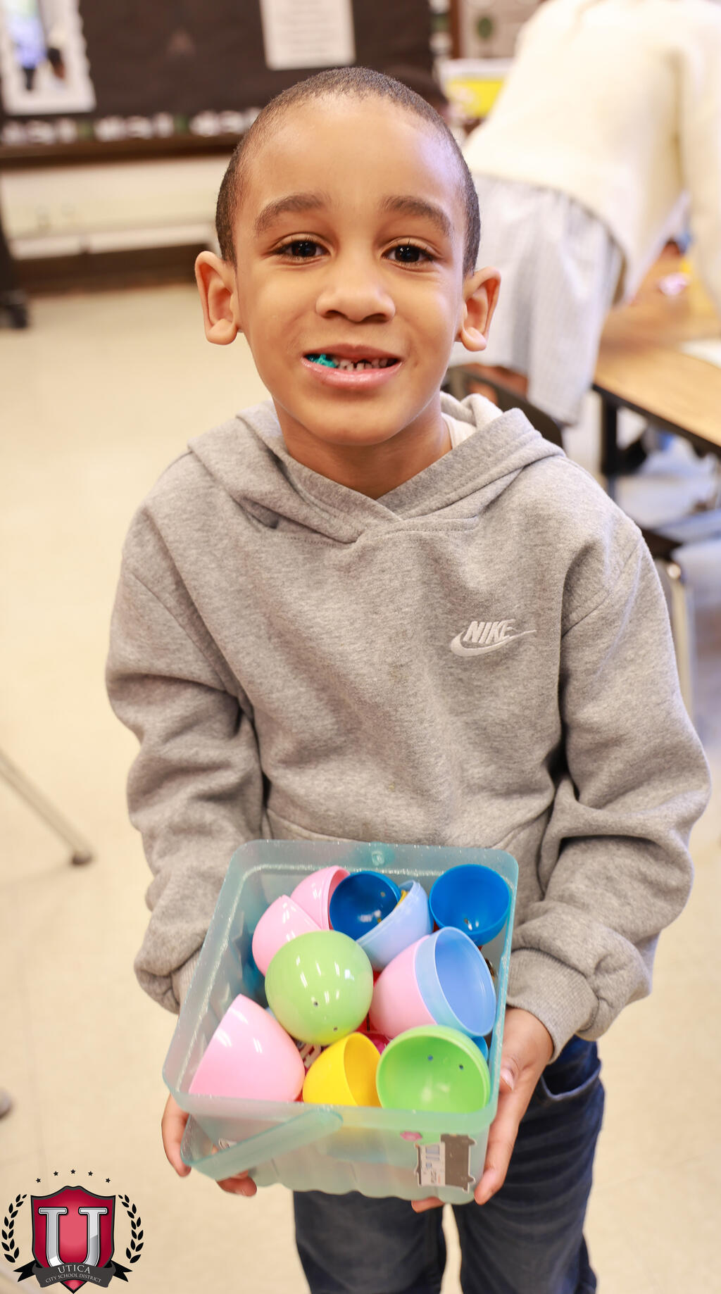 eggs hidden throughout the classroom. Smiles abounded as they discovered each hidden egg,