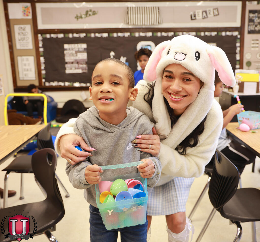 Hughes Elementary School! Students with decorated baskets searched for and found pastel Easter