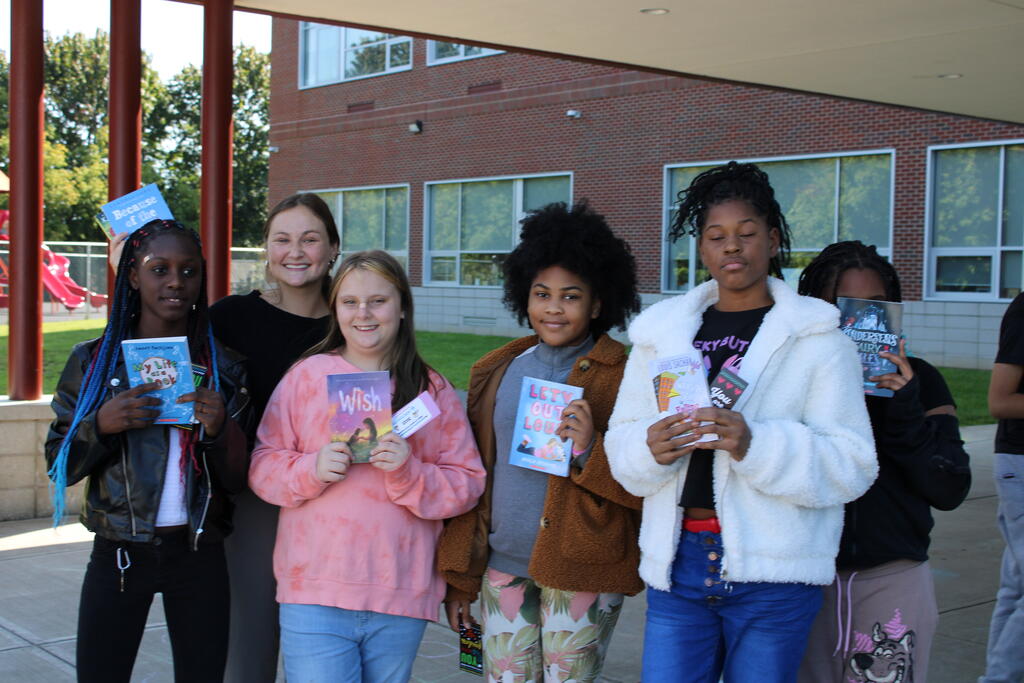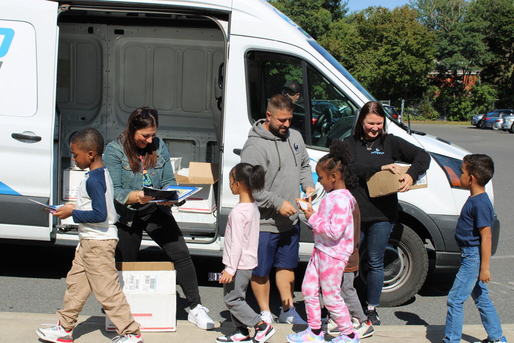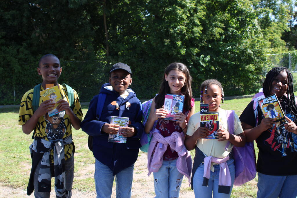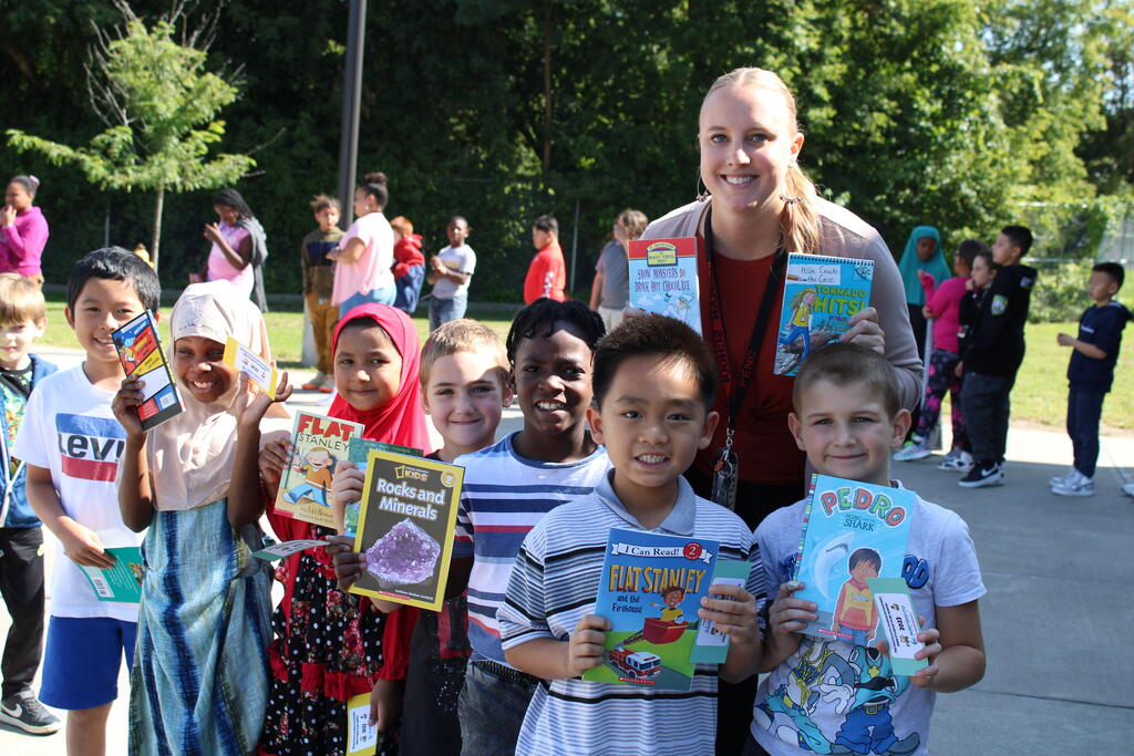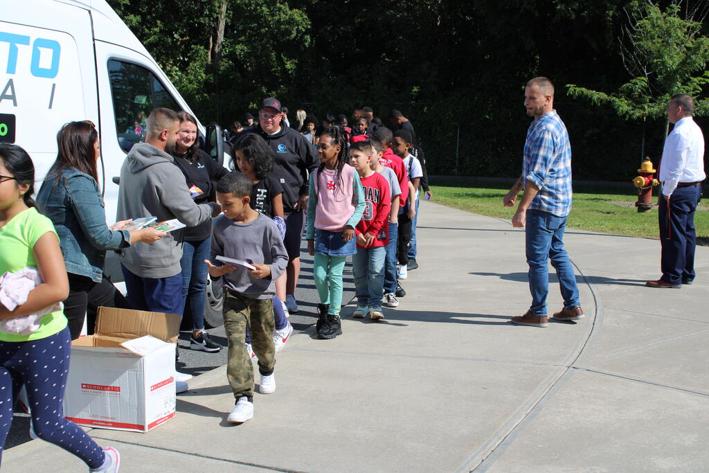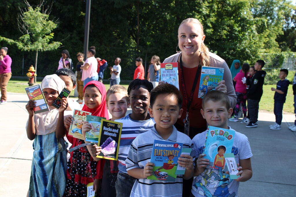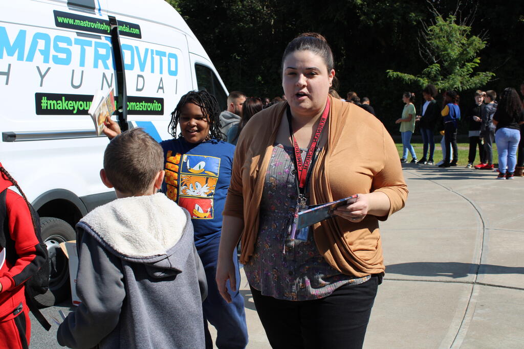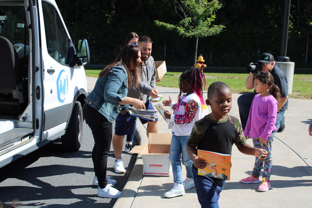 စက်တင်ဘာလ ၂၁ ရက် ကြာသပတေးနေ့မှာ Mastrovito Hyundai Bookmobile ကရင်နန်ကျောင်းကို လည်ပတ်ခဲ့တယ်! အဆောက်အအုံထဲက ကျောင်းသားတိုင်း စာအုပ်တစ်အုပ် လက်ခံရရှိခဲ့ကြတယ်။
