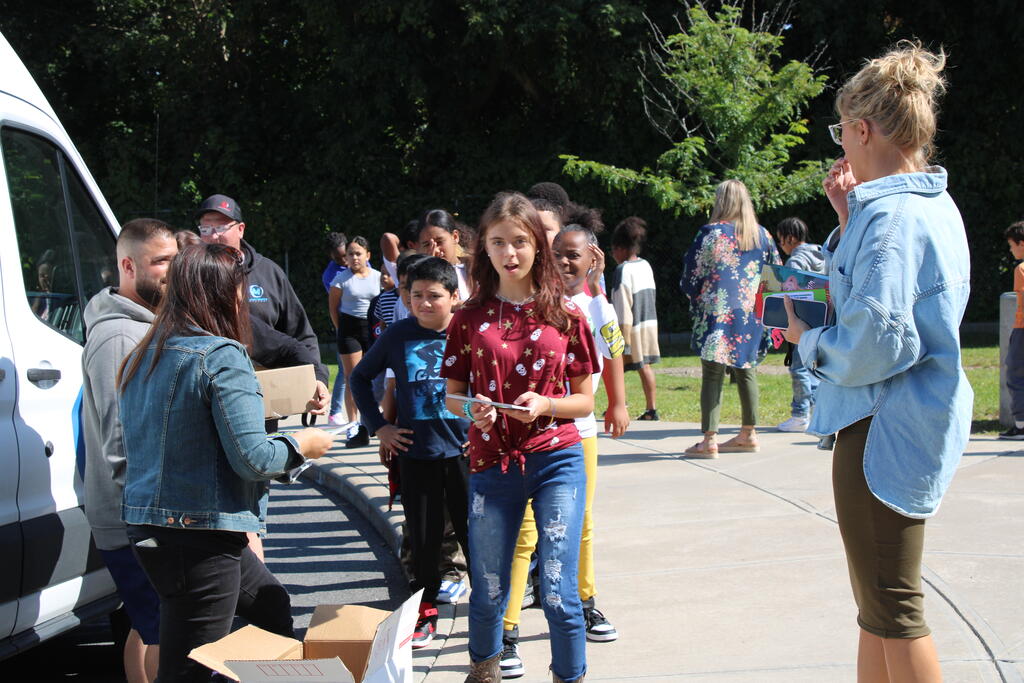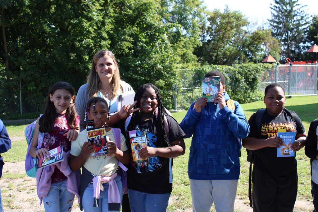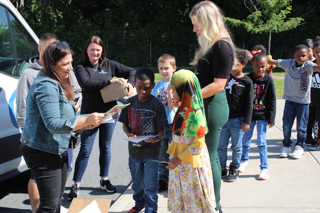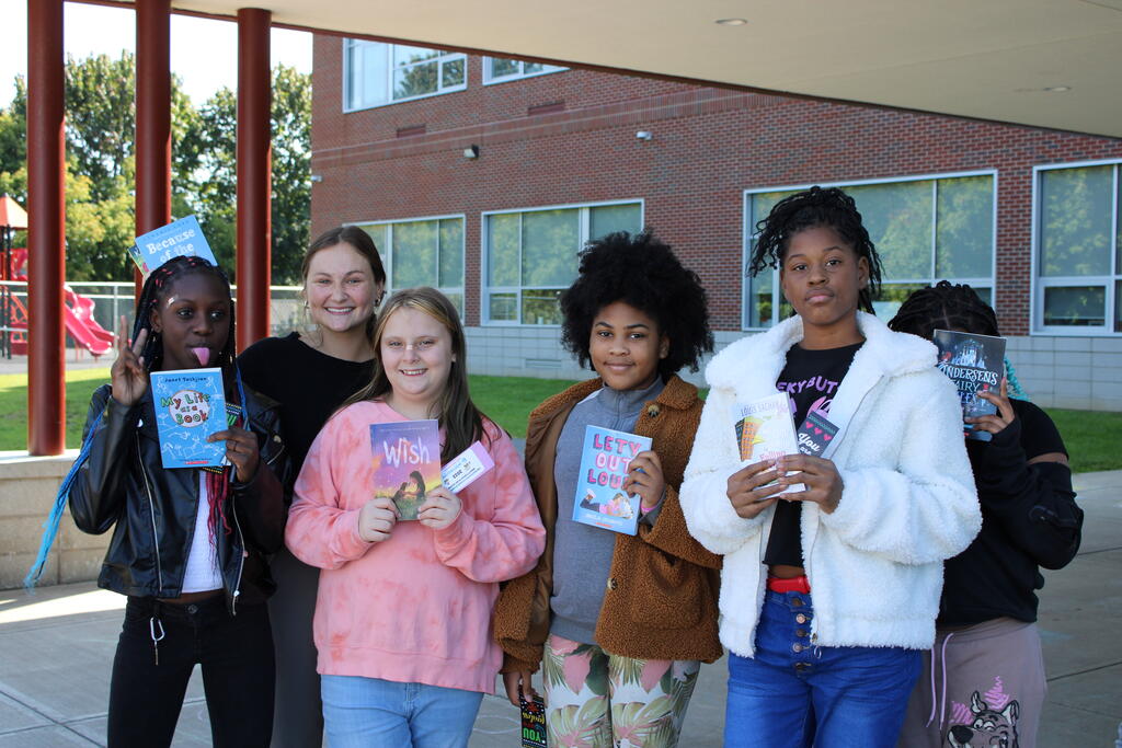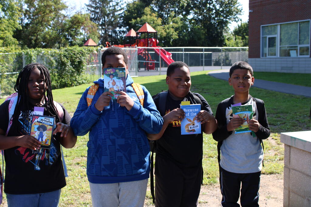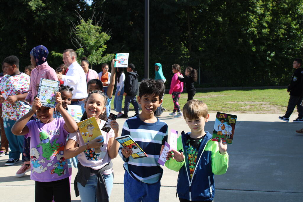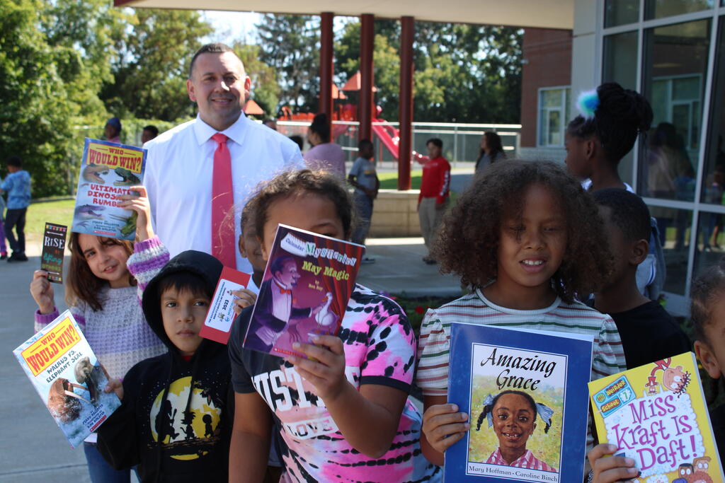 စက်တင်ဘာလ ၂၁ ရက် ကြာသပတေးနေ့မှာ Mastrovito Hyundai Bookmobile ကရင်နန်ကျောင်းကို လည်ပတ်ခဲ့တယ်! အဆောက်အအုံထဲက ကျောင်းသားတိုင်း စာအုပ်တစ်အုပ် လက်ခံရရှိခဲ့ကြတယ်။