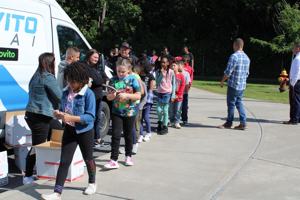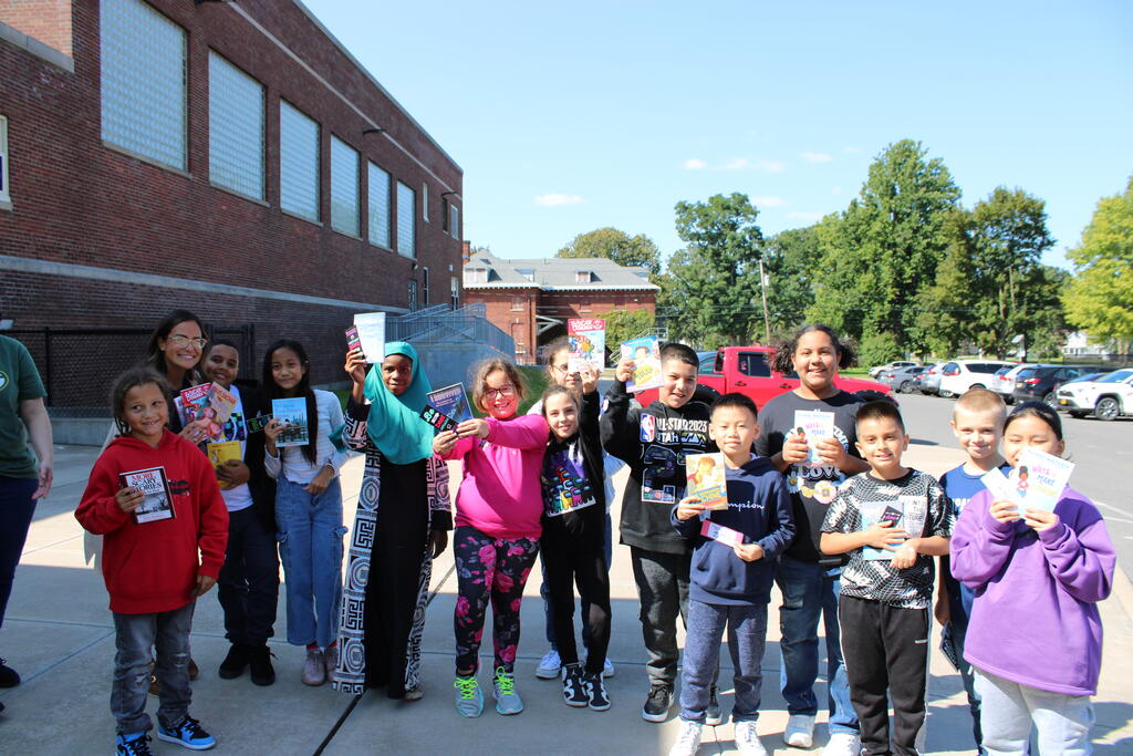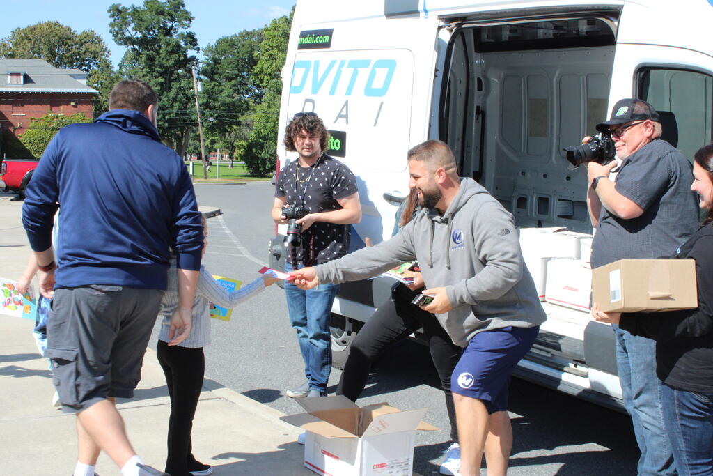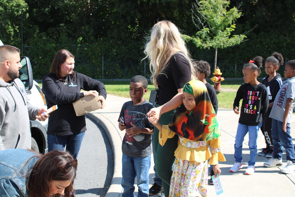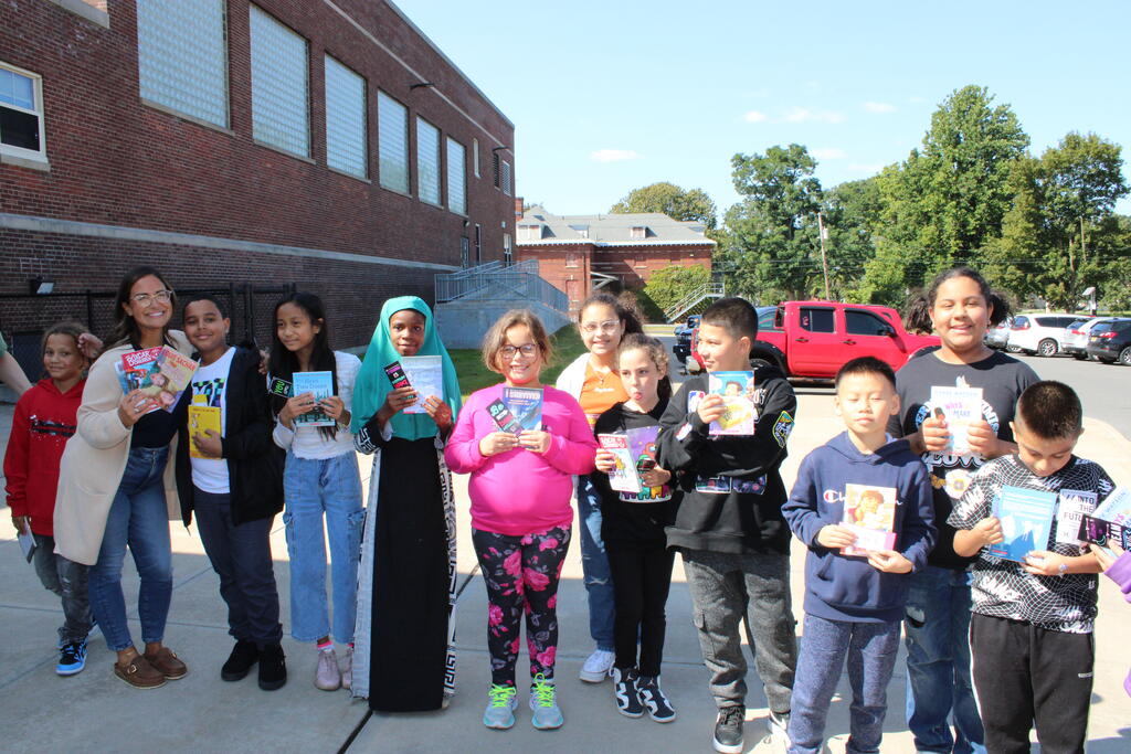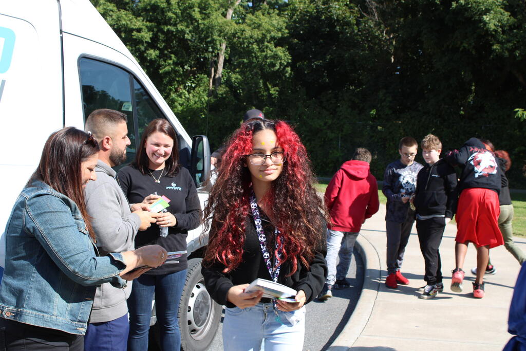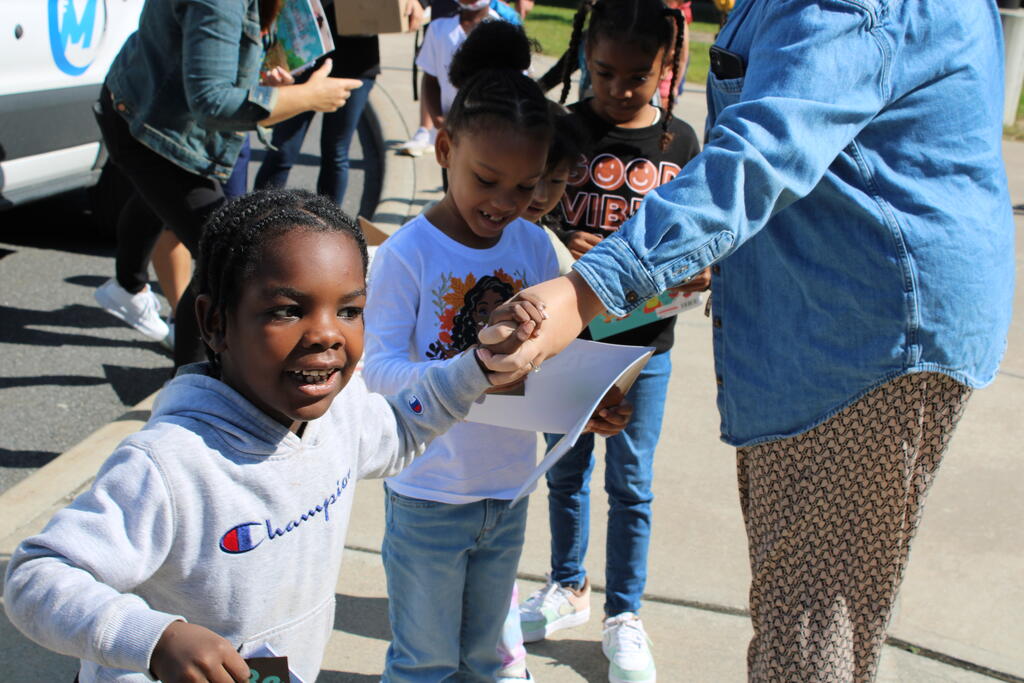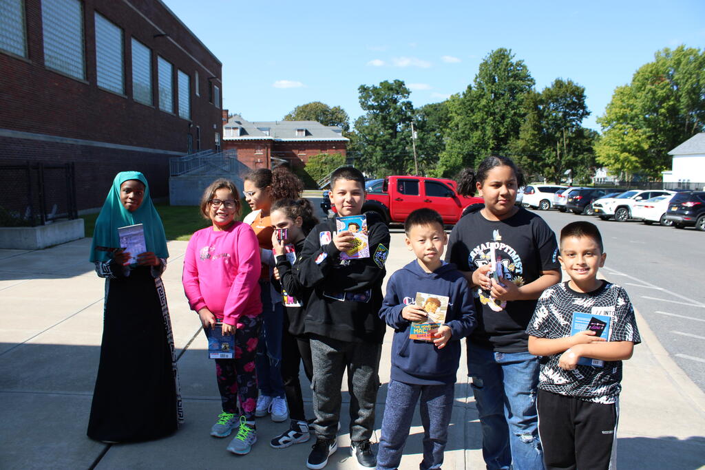 စက်တင်ဘာလ ၂၁ ရက် ကြာသပတေးနေ့မှာ Mastrovito Hyundai Bookmobile ကရင်နန်ကျောင်းကို လည်ပတ်ခဲ့တယ်! အဆောက်အအုံထဲက ကျောင်းသားတိုင်း စာအုပ်တစ်အုပ် လက်ခံရရှိခဲ့ကြတယ်။